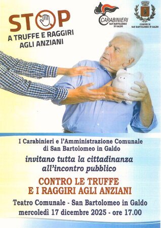 ontinuano gli incontri pubblici promossi dai Carabinieri del Comando Provinciale di Benevento allo scopo di sensibilizzare quante più persone è possibile sul detestabile fenomeno criminale delle truffe nei confronti di persone anziane. Ieri pomeriggio, presso il teatro comunale di San Bartolomeo in Galdo, il Comandante della locale Compagnia, Maggiore Gaetano Ragano ed il Comandante della Stazione, Maresciallo Maggiore Gaetano Pallavanti, accolti dal sindaco Carmine Agostinelli, hanno incontrato 85 persone appartenenti alla fascia della terza età illustrando le diverse modalità con cui i truffatori approcciano le vittime designate. È stato citato il tipico esempio della telefonata fatta a casa dal falso Carabiniere – o dal finto appartenente ad altre Forze di Polizia – che annuncia l’arresto oppure il coinvolgimento in un sinistro stradale di un prossimo congiunto, prospettando la soluzione immediata di consegnare denaro contante o addirittura monili preziosi ad un collaboratore che, di lì a poco, essendo già nei paraggi, si presenterà per ritirarli e consegnarli a chi dovrà “risolvere il problema”. E come questo, sono stati raccontati al pubblico attento ed incuriosito tanti altri casi che hanno tutti lo stesso leitmotiv: per far uscire un figlio, un nipote o un parente qualsiasi, magari lontano, dalla vicissitudine in cui è incappato, bisogna dare soldi o gioielli all’incaricato di turno, che poi – però – sparisce nel nulla insieme al maltolto ed alla tremenda farsa inscenata in danno della malcapitata persona che, solo dopo un po’ di tempo, si renderà conto di essere stata truffata. Nel corso dell’incontro, trasmesso in diretta Facebook, non è mancata la spiegazione dei numerosi trucchi che i truffatori mettono in scena per carpire la fiducia degli ignari interlocutori facendo leva su cordesensibili e sugli affetti familiari, supportata anche da alcuni video divulgativi che hanno catturato l’attenzione della platea, focalizzando il messaggio che i Carabinieri – come nessun altro funzionario pubblico – per nessun motivo vanno a chiedere denaro o altri beni “a domicilio” e che non è opportuno tenere tanti soldi in casa, soprattutto per le categorie di persone maggiormente vulnerabili. Per il Comando Provinciale dei Carabinieri di Benevento la collaborazione fra istituzioni, ed ancor più quella fra le istituzioni ed i cittadini, è fondamentale per arginare il fenomeno delle truffe agli anziani.