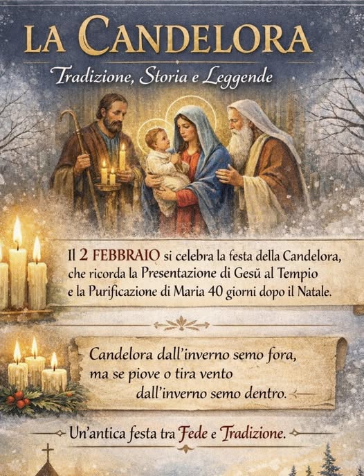 Il 2 febbraio non è solo una festa religiosa, ma anche un momento di osservazione della natura. Da secoli, la Candelora è associata a proverbi legati al meteo, diventando una vera e propria “cartina di tornasole” per l’inverno. Un detto molto famoso recita: “Candelora dall'inverno semo fora, ma se piove o tira vento dall'inverno semo dentro”Oggi, guardare al cielo il 2 febbraio resta un piccolo rituale che unisce tradizione e natura: basta uno sguardo alle nuvole o al sole per sentirsi parte di un antico dialogo tra l’uomo e l’inverno. E tu conosci altri proverbi meteo legati alla Candelora? Scrivilo nei commenti!