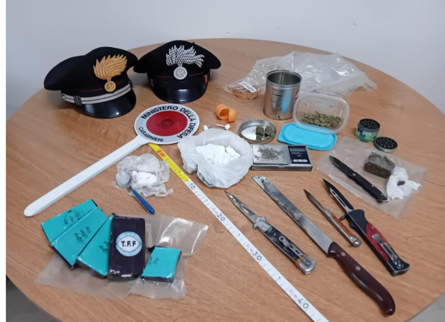 Nella mattinata odierna, nell’ambito di un servizio straordinario di controllo del territorio disposto per il contrasto allo spaccio di sostanze stupefacenti, i Carabinieri della Compagnia competente, coadiuvati da un’unità cinofila antidroga del Nucleo Carabinieri di Sarno, hanno tratto in arresto in flagranza di reato un 17enne e un 24enne, ritenuti responsabili di detenzione ai fini di spaccio. L’operazione, condotta tra i territori di Benevento e Apice, è scaturita al termine di una complessa attività investigativa finalizzata alla prevenzione e repressione dei reati in materia di stupefacenti. Le successive perquisizioni domiciliari eseguiti dai militari del Nucleo Operativo e Radiomobile e della Stazione di Apice hanno consentito di rinvenire un ingente quantitativo di droga, oltre a strumenti e somme di denaro ritenuti riconducibili all’attività illecita. In particolare, presso l’abitazione del 17enne, in diversi ambienti dell’immobile, sono stati rinvenuti circa 4 grammi di marijuana, sei panetti di hashish del peso complessivo di circa 500 grammi, accuratamente avvolti in cellophane trasparente, nonché circa 80 grammi di cocaina contenuti in due buste di plastica e ulteriori due dosi confezionate in involucri di cellophane. All’interno dell’abitazione sono stati inoltre trovati un bilancino di precisione e materiale vario destinato al confezionamento delle dosi. Presso l’abitazione del 24enne, i militari hanno rinvenuto circa 12 grammi di cocaina contenuti in un bicchiere di plastica, un bilancino di precisione con tracce della medesima sostanza, circa 5 grammi di marijuana custoditi in un barattolo in plastica, un coltello da cucina con tracce di hashish sulla lama, un cucchiaino con residui di cocaina e un ulteriore frammento di hashish del peso di circa 0,2 grammi. È stata altresì sequestrata la somma in contanti pari a 1.800 euro, ritenuta provento dell’attività di spaccio. Tutto il materiale rinvenuto è stato sottoposto a sequestro. Nel medesimo contesto operativo, una persona del capoluogo è stata segnalata alla competente Autorità Prefettizia ai sensi dell’art. 75 del D.P.R. 309/1990 quale assuntore di sostanze stupefacenti, poiché trovato in possesso di circa un grammo di hashish Gli arrestati, espletate le formalità di rito, sono stati messi a disposizione dell’Autorità Giudiziaria competente. L’operazione conferma l’impegno costante dell’Arma dei Carabinieri nel contrasto al traffico e allo spaccio di droga, fenomeno che incide in maniera significativa sulla sicurezza e sulla legalità del territorio, con particolare attenzione alla tutela delle fasce più giovani della popolazione. Le persone arrestate sono da ritenersi innocente fino a eventuale sentenza definitiva di condanna. Benevento, 04.03.2026Benevento 6 marzo 2026